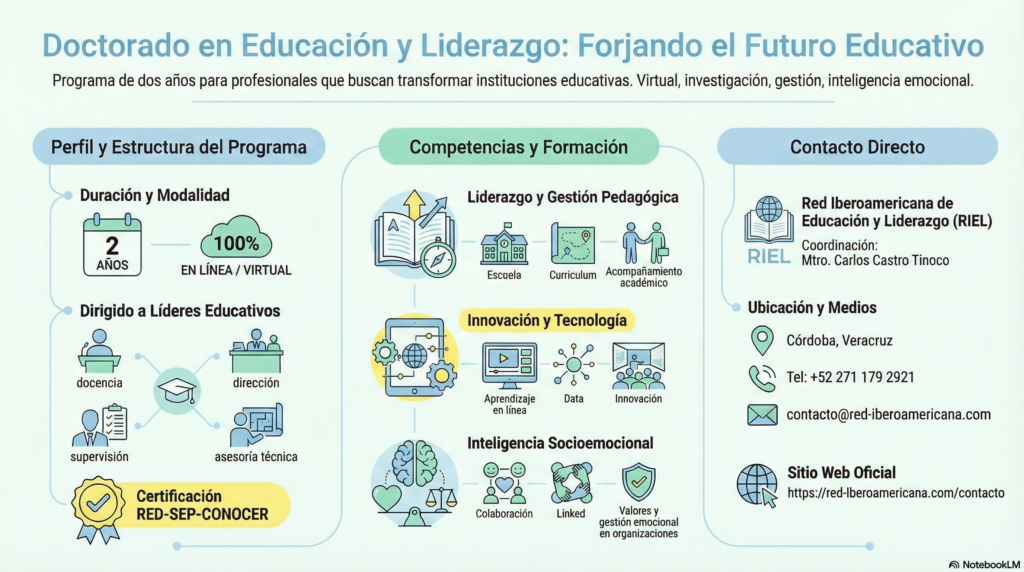 En un entorno donde la inteligencia artificial y el marketing digital evolucionan a pasos agigantados, la profesionalización docente ya no es una opción, sino una necesidad. La Red Iberoamericana de Educación y Liderazgo (RIEL) ofrece un programa diseñado para quienes buscan encabezar este cambio: el Doctorado en Educación y Liderazgo.